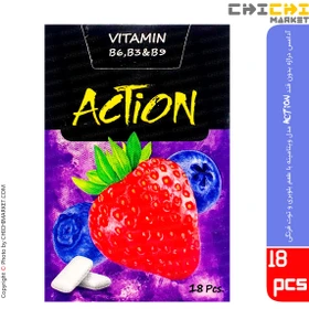 اکشن آدامس بدون شکر ویتامینه با طعم توت فرنگی