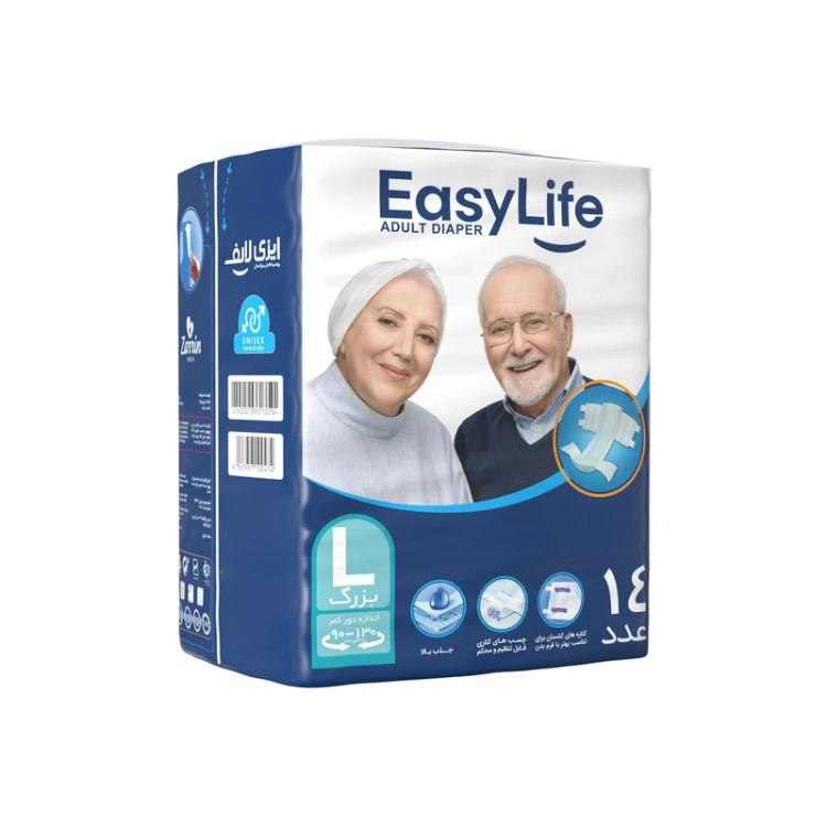موارد مصرف:: جذب بالا.چسب های کناری قابل تنظیم و محکم.کناره های کشسان برای تناسب بهتر با فرم بدن.اندازه دور کمر 90_130 سانتی متر